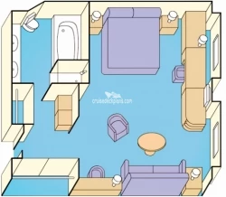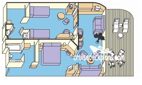 - A mini-suite and interior stateroom that are connected by a large living room with two sofa beds- Large Private balcony