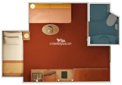 Cloud 9 Spa staterooms feature private spa access and priority spa reservations /Handicap cabins have twin beds that convert to queen and chair instead of sofa.