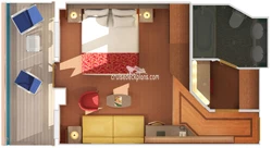 Cabins 9205 and 9206 have slighly smaller balconies that can be viewed from Captians Suite balcony. Cabin 7228 is a modified handicap cabin and 450 square feet with 110 square foot balcony.Stateroom Cabin Perks