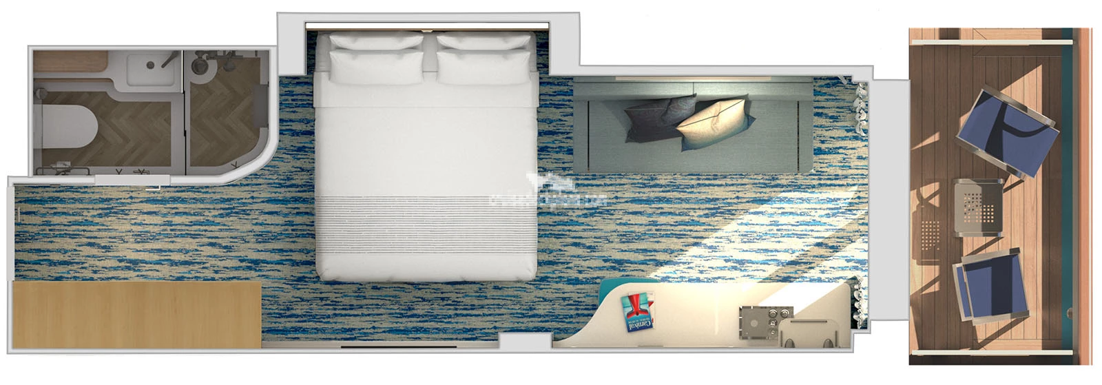 Balcony size ranges from 82 to 97 square feet. Children in Havana Stateroom must be 12 years or older. The Havana features an exclusive ocean-air deck with pool daily till 7:00 p.m. The Havana bar is open to all guests.Stateroom Cabin Perks