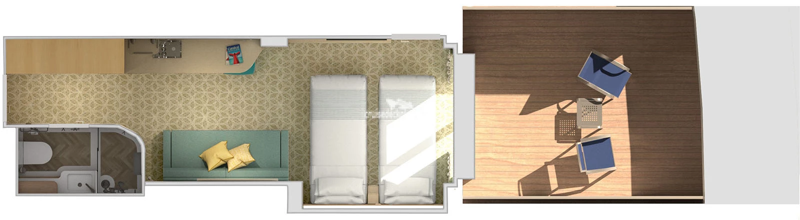 Havana Cabana Suite (HS) is 308 square foot stateroom plus 118 square foot patio. Children in Havana Stateroom (Category HS) must be 12 years or older. The Havana features an exclusive ocean-air deck with pool daily till 7:00 p.m. The Havana bar is open to all guests.Stateroom Cabin Perks