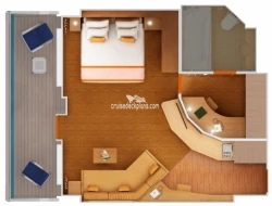 - Twin beds that convert to king- 221 square foot separate bedroom