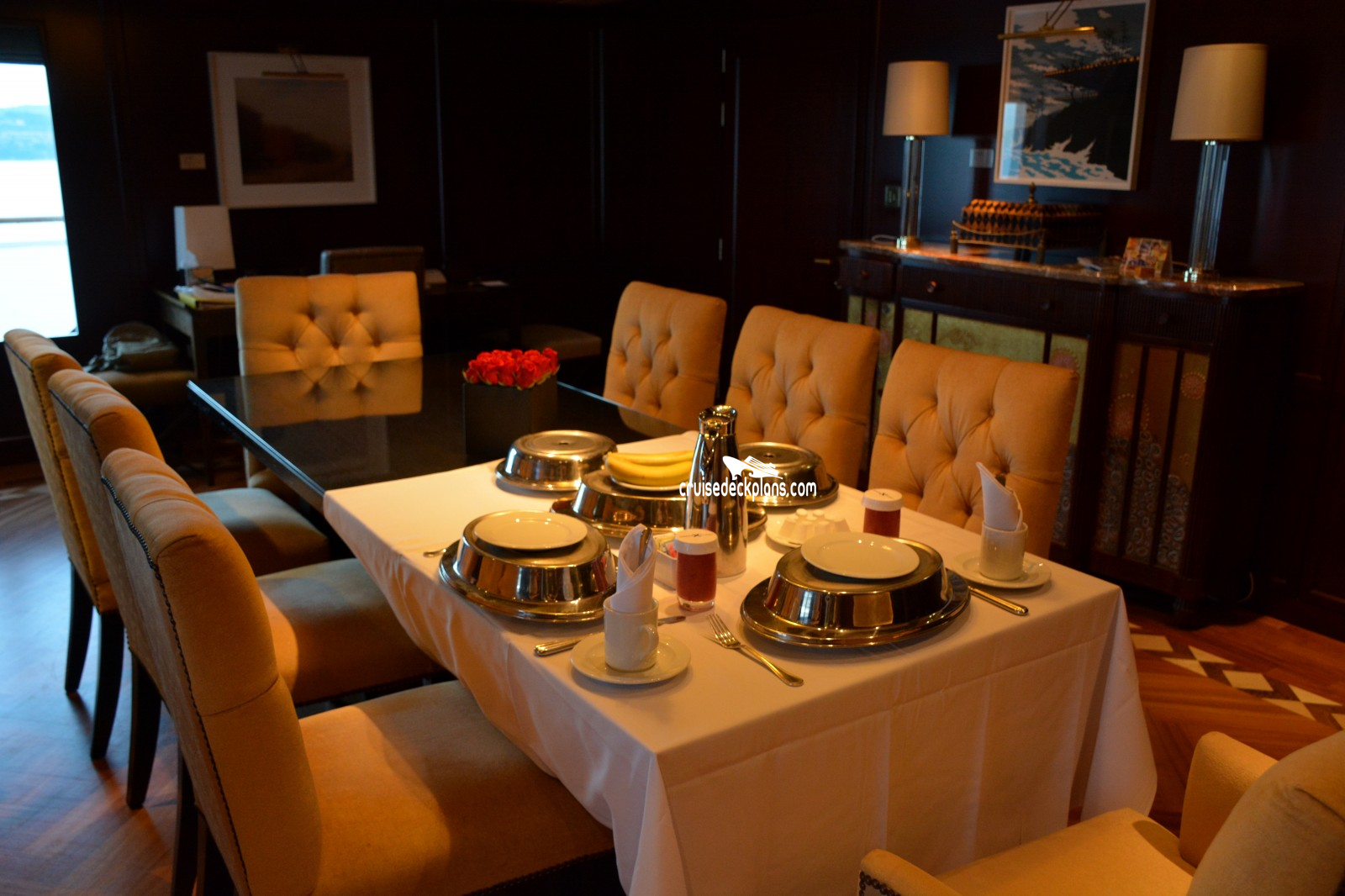 Pillow Menu / Complimentary bottled water, soda, and beer stocked daily / Complimentary in-suite espresso and cappuccino / Unlimited lunch and dinner in all specialty restaurants(some exclusions) / Two complimentary bottles of premium spirits / The Retreat premium pajamas / Unlimited access to the SEA Thermal Suite / VIP canapés / Complimentary laundry service / Unlimited complimentary pressing / Priority luggage delivery / Option to dine at luminae / Expanded room service breakfast menu / Full in-suite breakfast, lunch, and dinner service / Afternoon tea event hosted in exclusive lounge / Dedicated butler / Dedicated concierge service / Priority checkin, departure, & port tendering / Reserved theature seating on evening chic nights / Welcome bottle of champagne/sparkling wine / Sparkling wine upon request / Daily delights / Retreat lounge/ michaels club / Retreat sundeck (not on all ships) / Premium drinks / Wi-fi package /Amenities also include oversized 100% cotton bath towels, slippers, and extra handheld hair dryer.