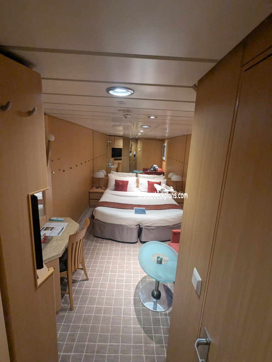 Built in 2001, the Celebrity Cruise Line Celebrity Infinity internal volume is 90K tons and has 1085 staterooms for up to 2604 passengers served by 997 crew. There are 12 passenger decks, 7 with cabins. You can expect a space ratio of 35 gross tons per passenger on this ship. On this page are the current deck plans for Celebrity Infinity showing deck plan layouts, public venues and all the types of cabins including pictures and videos.