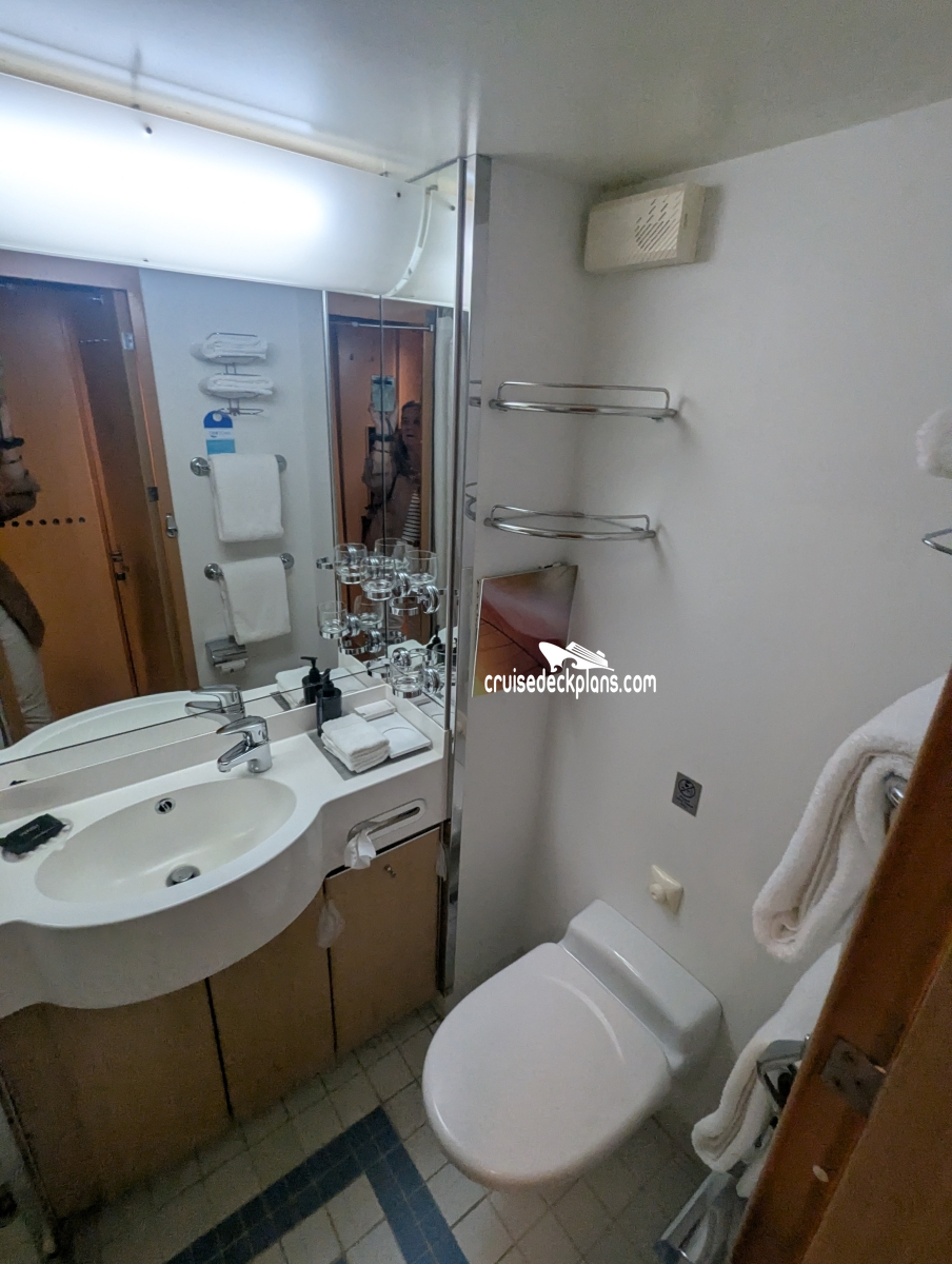 - NOTE: Corner cabins have mostly solid metal balcony walls.