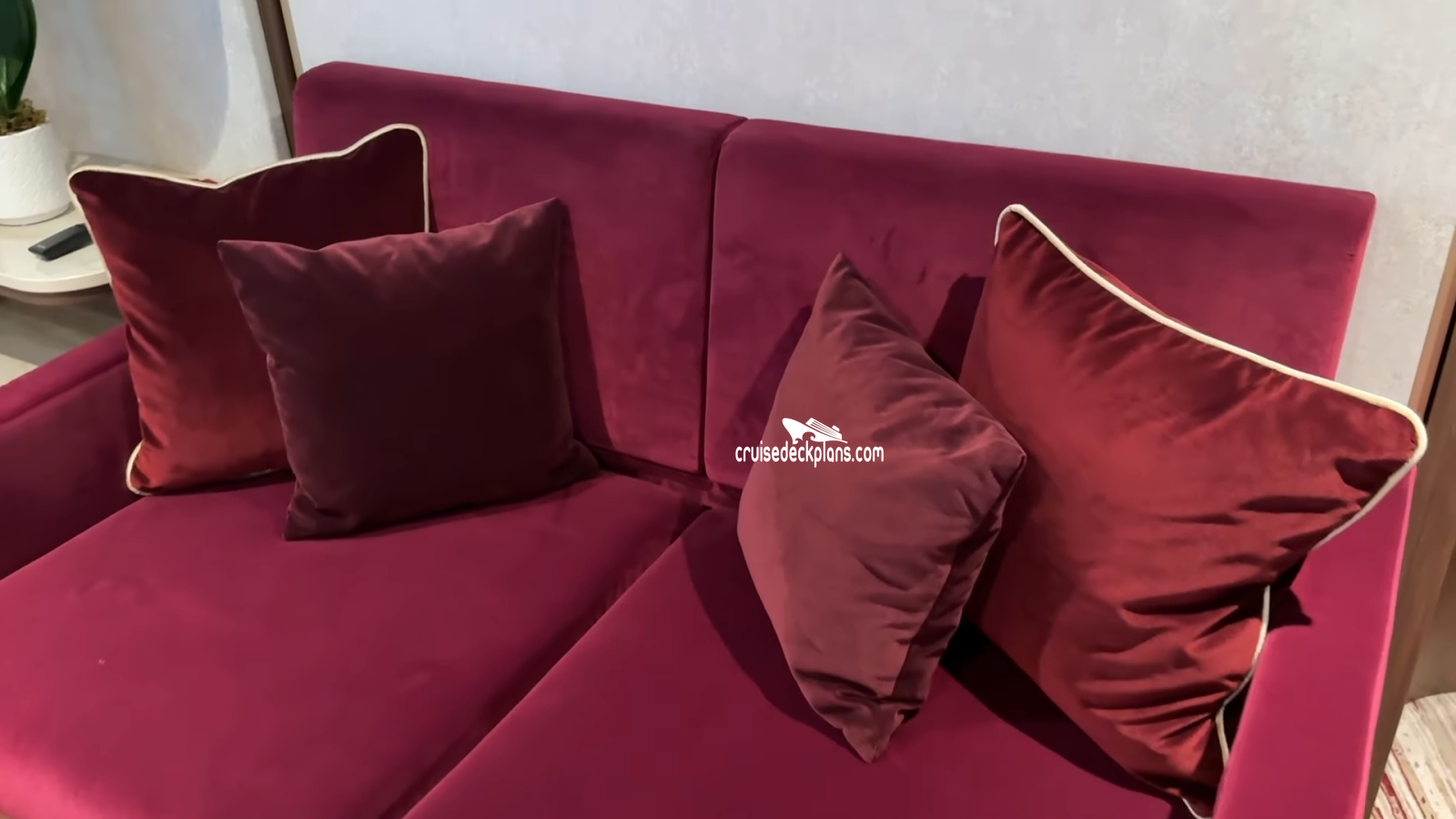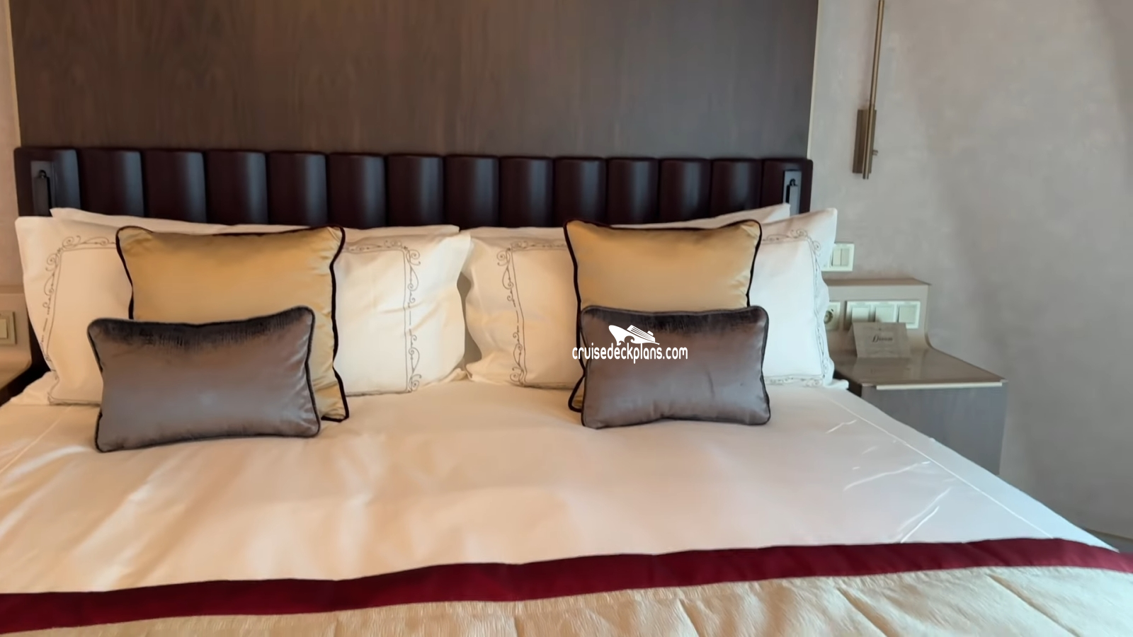 Concierge Service / Priority Check In / Priority Tender Boarding / Dining in the Stateroom / Exclusive Lounge / Priority Dining Reservations / Exclusive Outdoor Lounge / Thick Cotton Robes / Pillow Menu / Sealy Posturepedic Euro-top mattress / Frette 100% Egyptian cotton linens / 2 LCD 42 inch HD flat screen Tvs / Ipod docking station / Enhanced line of H20 Plus spa products / Media library / Pre-arrival concierge services /Amenities are subject to change without notice.