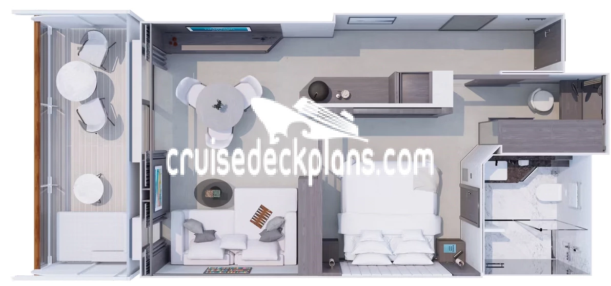 Built in 2026, the Explora Journeys Explora III internal volume is 73K tons and has 463 staterooms for up to 926 passengers served by 700 crew. There are 13 passenger decks, 5 with cabins. You can expect a space ratio of 79 gross tons per passenger on this ship. On this page are the current deck plans for Explora III showing deck plan layouts, public venues and all the types of cabins including pictures and videos.