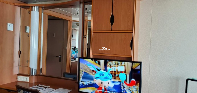 Standard cabin amenities /Panoramic window in category PF measures 76 inches high by 321 inches wide. Window in P1 measures 76 inches high by 253 inches wide. Window in P2 measures 76 inches high by 103 wide.
