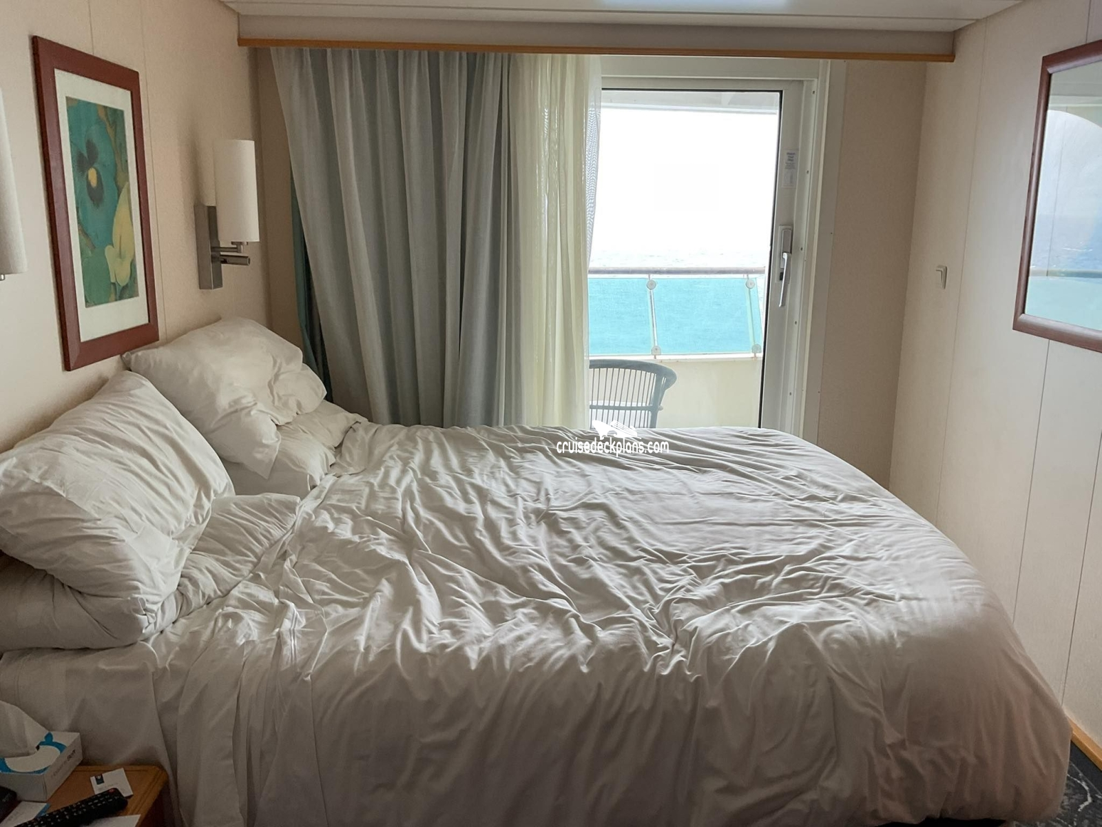 - Two twin beds that convert to queen-size (72.5 by 82 inches)- Private balcony