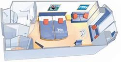 Concierge Service / Priority Check In / Priority Luggage Delivery / Priority Debarkation / Priority Tender Boarding / Reserved Show Seats / Dining in the Stateroom / Exclusive Lounge / Exclusive Full Breakfast Restaurant / Exclusive Lunch Restaurant / Thick Cotton Robes / Pillow Menu / VIP pool deck seating / Private breakfast and lunch seating in specialty restaurants on Voyager and Freedom Class ships / Mattel board games available to order for in-room entertainment for the kids / Complimentary pressing service on formal night. /Bathrooms in standard staterooms are approximately 3' x 5'8". Shampoo, conditioner and soap are supplied in suites. Shampoo and soap are supplied in standard staterooms. Showers are European telephone style, adjustable from 1.4 m to 1.9 m, or 6'2", max. clearance height. Someone taller than 6'2" will fit in the shower, but will likely have to duck to get his or her head under the running water. Shower stools and nonslip mats are provided upon request.