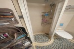 Bathrooms in standard staterooms are approximately 3' x 5'8". Shampoo, conditioner and soap are supplied in suites. Shampoo and soap are supplied in standard staterooms. Showers are European telephone style, adjustable from 1.4 m to 1.9 m, or 6'2", max. clearance height. Someone taller than 6'2" will fit in the shower, but will likely have to duck to get his or her head under the running water. Shower stools and nonslip mats are provided upon request.