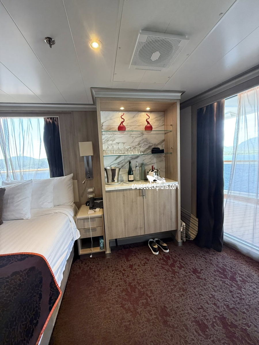 Cabin size ranges from 381-400 square feet including verandah.Stateroom Cabin Perks