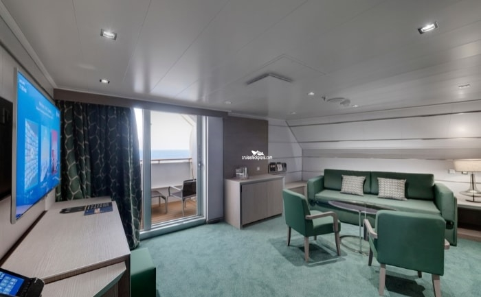 Midship Balconies are larger. Forward and Aft balconies are around 126 square feet plus 40 square foot balcony. Category BR1 sleeps up to 3. Category BM1 and BM2 sleep up to 2. All others sleep up to 4.Stateroom Cabin Perks