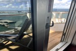 - Corner Grand Suites have small side balcony and porthole window overlooking bow of ship.