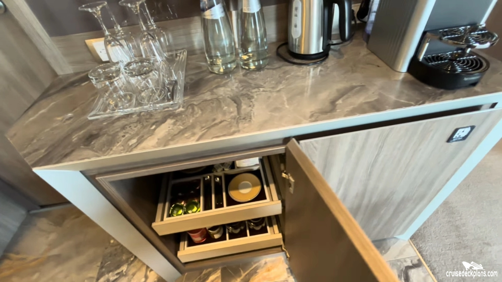 Aurea Rate (For Suites and balcony rooms close to the Spa): All features of Fantastic Rate plus 24-hour room service, Welcome package (Ameri Prosecco and chocolate box), Free time dining, Free access to Top Exclusive Solarium, Bathrobe and slippers, Pillow Menu, Access to Thermal area, 40% off dedicated Spa prepaid package, 10% off all Spa treatments purchased on board, Priority boarding and luggage drop off. Starting July 1, 2025 adding priority disembarkation, complimentary minibar refreshments, and an in-room Nespresso machine.