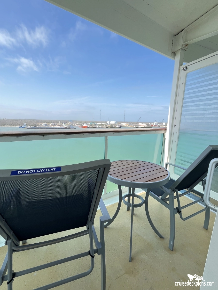 - Two twin beds that convert to queen-size (72.5 by 82 inches)- Private balcony