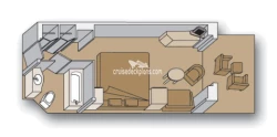 Concierge Service / Priority Check In / Priority Debarkation / Priority Tender Boarding / Afternoon Canapes / Afternoon Tea / Complimentary Shoe Shine / Welcome Champagne / Exclusive Lounge / Exclusive Full Breakfast Restaurant / Priority Dining Reservations / Complimentary Laundry / Thick Cotton Robes / Pillow Menu / Signature Mariner's Dream bed with plush euro-top mattress and finely woven cotton linens / Lighted magnifying mirrors / Massage showerheads / Salon-quality hair dryer / Elemis Aromapure bath products / Flat-panel TV and DVD player / complimentary DVD library / Personalized cruise stationary / Umbrella & binocular usage / Gorgeous corsages and boutonnieres for the first formal night / Cocktail party with ship's officers / Premium duvet / Complimentary bottled water at embarkation / Bose docking station / Complimentary mimosas with in-suite breakfast / In-suite coffee maker and espresso machine. /Amenities also include pressing and dry cleaning services, over-sized bath towels, slippers, priority theater seating requests, and exclusive daily breakfast service.
