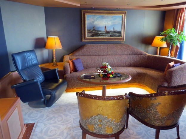 Concierge Service / Priority Check In / Priority Debarkation / Priority Tender Boarding / Afternoon Canapes / Afternoon Tea / Complimentary Shoe Shine / Welcome Champagne / Exclusive Lounge / Exclusive Full Breakfast Restaurant / Priority Dining Reservations / Complimentary Laundry / Thick Cotton Robes / Pillow Menu / Signature Mariner's Dream bed with plush euro-top mattress and finely woven cotton linens / Lighted magnifying mirrors / Massage showerheads / Salon-quality hair dryer / Elemis Aromapure bath products / Flat-panel TV and DVD player / complimentary DVD library / Personalized cruise stationary / Umbrella & binocular usage / Gorgeous corsages and boutonnieres for the first formal night / Cocktail party with ship's officers / Premium duvet / Complimentary bottled water at embarkation / Bose docking station / Complimentary mimosas with in-suite breakfast / In-suite coffee maker and espresso machine. /Amenities also include pressing and dry cleaning services, over-sized bath towels, slippers, priority theater seating requests, and exclusive daily breakfast service.