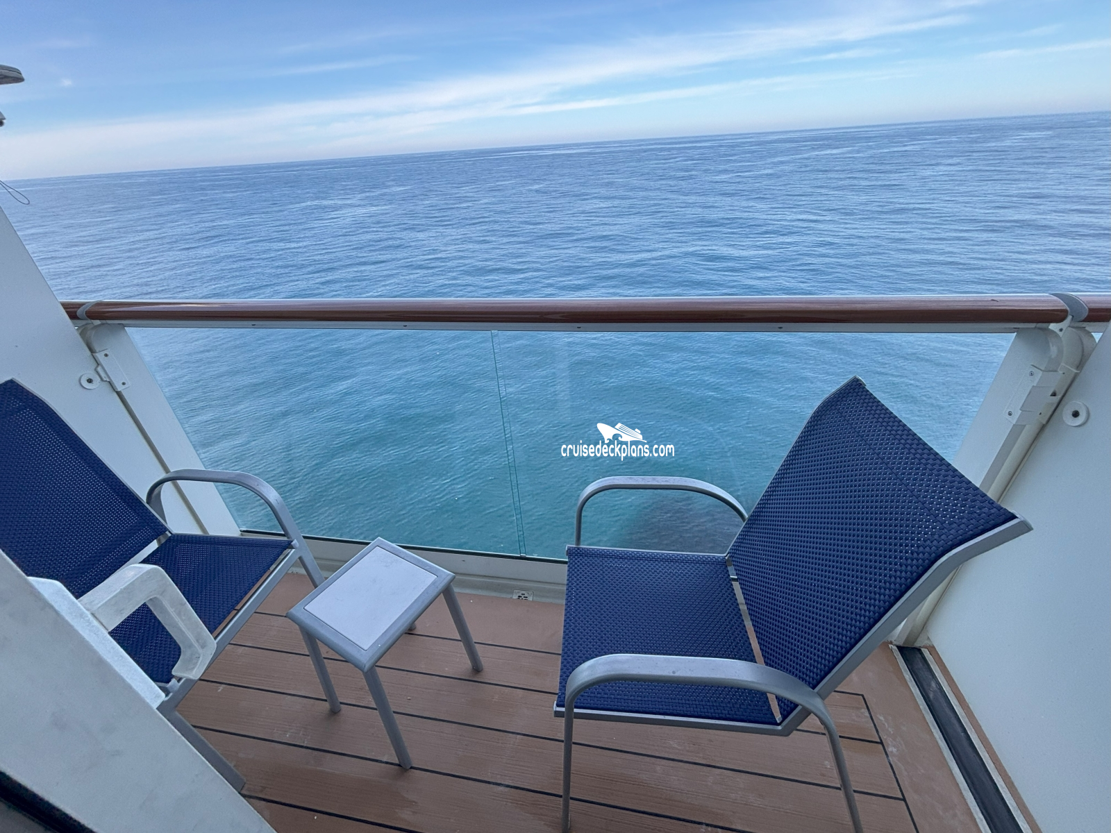Category MX and M6 has 120 square foot balconies. Aft Mini-Suites category M1 are 312 square feet plus 200 square foot balcony.Stateroom Cabin Perks
