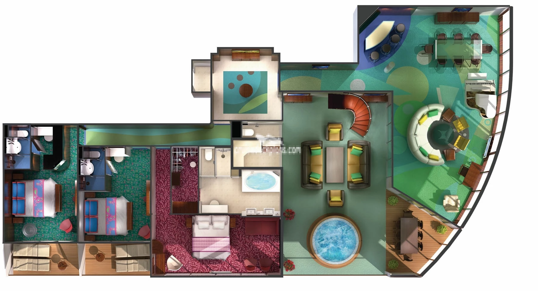 Category HF is 380 square feet plus 60 square foot balcony. Category H6 is called Haven 2-Bedroom Family Villa and has additional small bedroom and bath with shower similar to category S4 on deck 11.Stateroom Cabin Perks