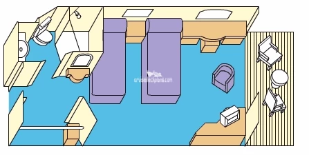 - Two twin beds that convert to a queen- Picture window (categorie OW is obstructed by lifeboats or ship structures)