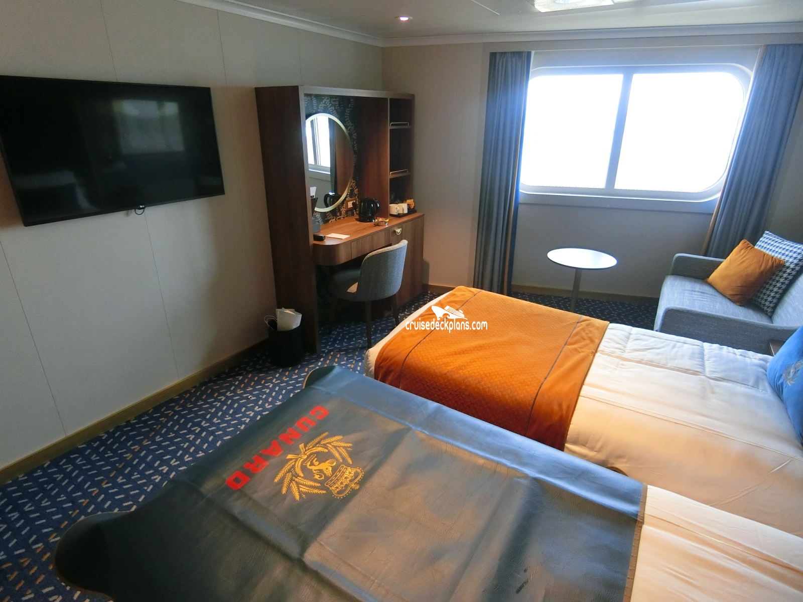 - Choice of Early, Late, and Open Dining in the Britannia Restaurant- Sealy Cunarder bed configurable to king-size or two single beds