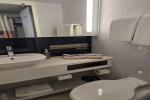 Standard cabin amenities /Bathrooms in standard staterooms are approximately 3' x 5'8". Shampoo, conditioner and soap are supplied in suites. Shampoo and soap are supplied in standard staterooms. Showers are European telephone style, adjustable from 1.4 m to 1.9 m, or 6'2", max. clearance height. Someone taller than 6'2" will fit in the shower, but will likely have to duck to get his or her head under the running water. Shower stools and nonslip mats are provided upon request.