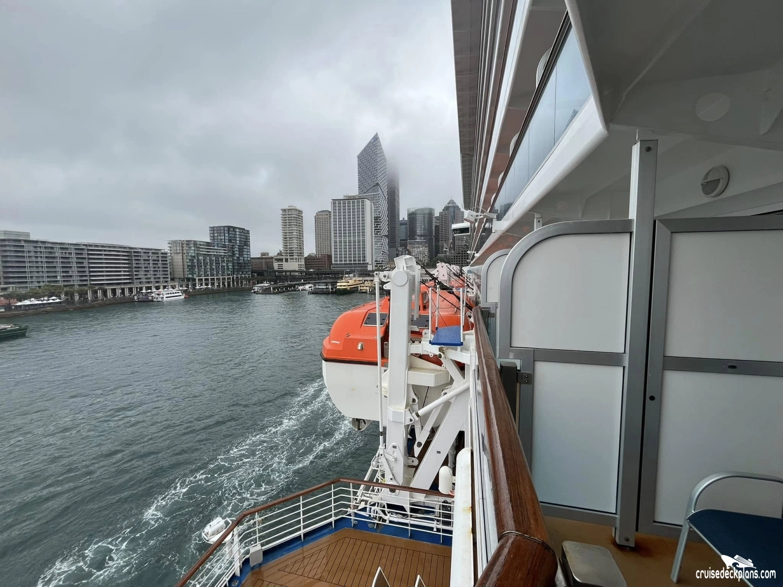 Category S3 Owner Suite cabin is 470 square feet plus the following balcony sizes: Marina, Riviera, Dolphin decks 210 square feet. Aloha and Caribe deck 120 square feet. Baja and Emerald deck 190 square feet.