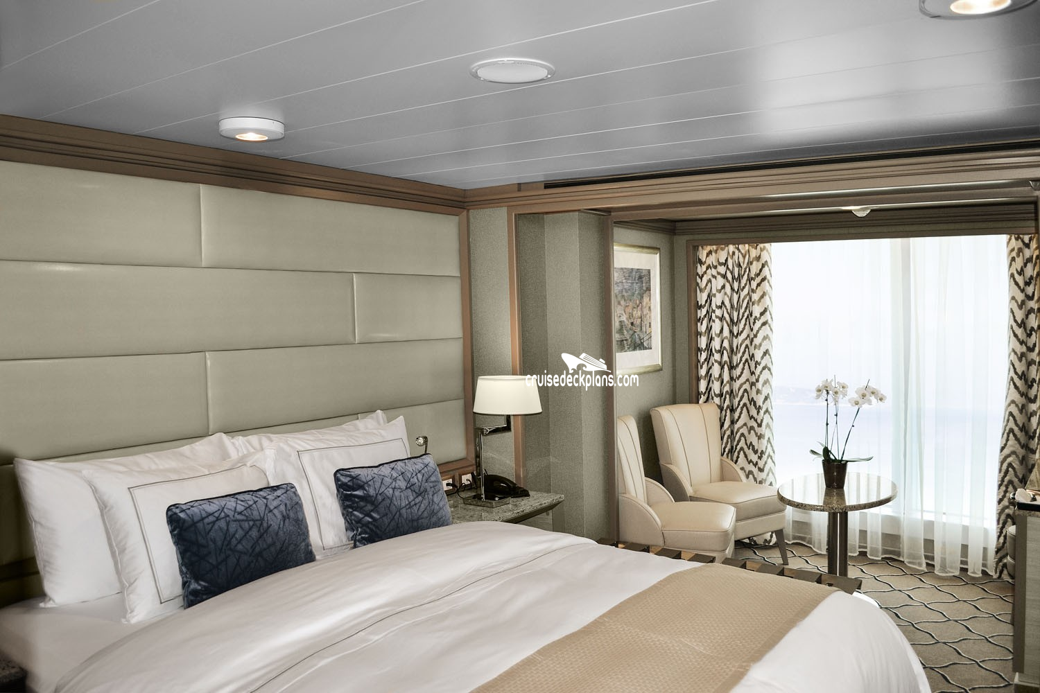 Size is for suties 944 & 945. Suites 942 & 943 slightly smaller at 1152 square feet plus balcony.Stateroom Cabin Perks