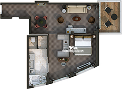- Living room with convertible sofa (In suites 6105,7095,8087,9089)
