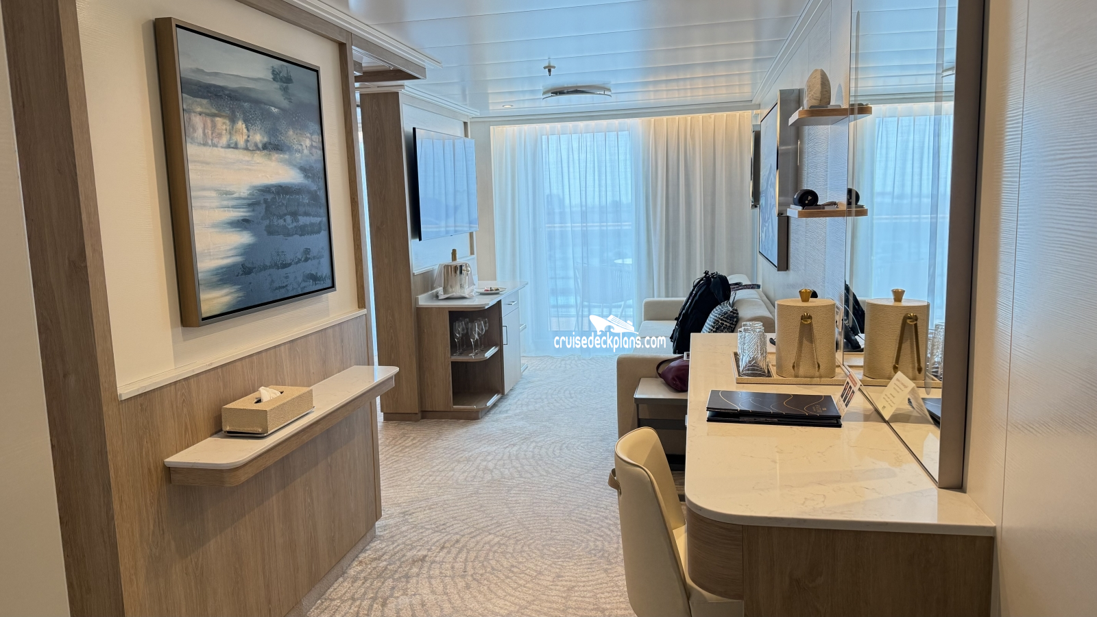 - Balcony with 2-4 chairs, table and ottoman- Private cabana beside your balcony for an extra-large outdoor lounge space
