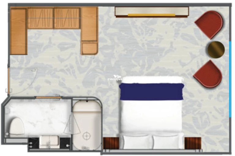 - Sliding door leading to private balcony- Queen bed (convertible to two twins)