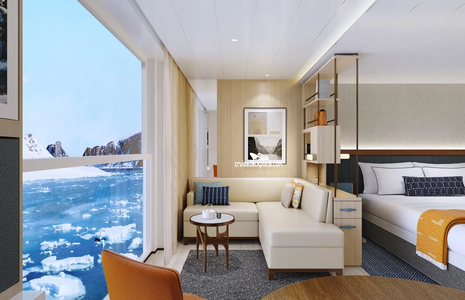 Built in 2022, the Viking Ocean Cruises Viking Polaris internal volume is 30K tons and has 187 staterooms for up to 374 passengers served by 260 crew. There are 6 passenger decks, 4 with cabins. You can expect a space ratio of 81 gross tons per passenger on this ship. On this page are the current deck plans for Viking Polaris showing deck plan layouts, public venues and all the types of cabins including pictures and videos.