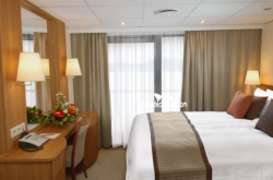 - 2 flat-panel TVs and panoramic windows- Hotel-style beds 79 inches x 63 inches (with optional twin-bed configuration)