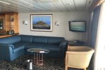 Concierge Service / Priority Check In / Priority Luggage Delivery / Priority Debarkation / Priority Tender Boarding / Reserved Show Seats / Dining in the Stateroom / Exclusive Lounge / Exclusive Full Breakfast Restaurant / Thick Cotton Robes / Pillow Menu / Complimentary 24-hour room service / Personal key to the Concierge Club / Suite Cocktail Party / Complimentary pre-dinner cheese plate on first formal evening / Complimentary petits four plate on the second formal or final evening of cruise / Welcome amenities include a fruit plate and bottle of Chandon, still water, and sparkling water. /Bathrooms in standard staterooms are approximately 3' x 5'8". Shampoo, conditioner and soap are supplied in suites. Shampoo and soap are supplied in standard staterooms. Showers are European telephone style, adjustable from 1.4 m to 1.9 m, or 6'2", max. clearance height. Someone taller than 6'2" will fit in the shower, but will likely have to duck to get his or her head under the running water. Shower stools and nonslip mats are provided upon request.