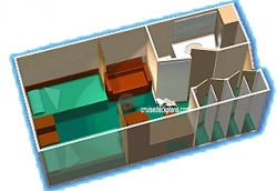 - Two lower twin beds that convert to Royal King (72.5 by 82 inches)- Double sofa bed for quad staterooms