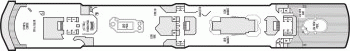 - Private bath with tub and/or shower (see symbols on deck plans)
