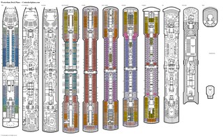 Click deck pictures to go to individual cruise deck plan pages where you can see all the public areas, venues and stateroom cabins categories for each deck.