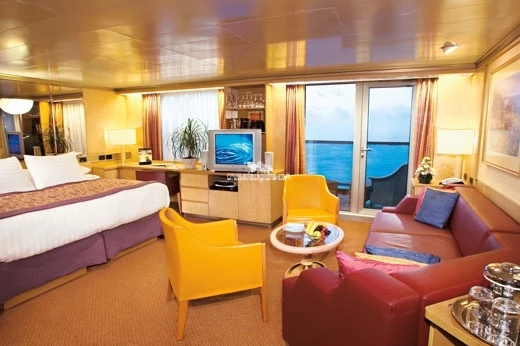 Concierge Service / Priority Check In / Priority Debarkation / Priority Tender Boarding / Afternoon Canapes / Afternoon Tea / Complimentary Shoe Shine / Welcome Champagne / Exclusive Lounge / Exclusive Full Breakfast Restaurant / Priority Dining Reservations / Complimentary Laundry / Thick Cotton Robes / Pillow Menu / Signature Mariner's Dream bed with plush euro-top mattress and finely woven cotton linens / Lighted magnifying mirrors / Massage showerheads / Salon-quality hair dryer / Elemis Aromapure bath products / Flat-panel TV and DVD player / complimentary DVD library / Personalized cruise stationary / Umbrella & binocular usage / Gorgeous corsages and boutonnieres for the first formal night / Cocktail party with ship's officers / Premium duvet / Complimentary bottled water at embarkation / Bose docking station / Complimentary mimosas with in-suite breakfast / In-suite coffee maker and espresso machine. /Amenities also include pressing and dry cleaning services, over-sized bath towels, slippers, priority theater seating requests, and exclusive daily breakfast service.
