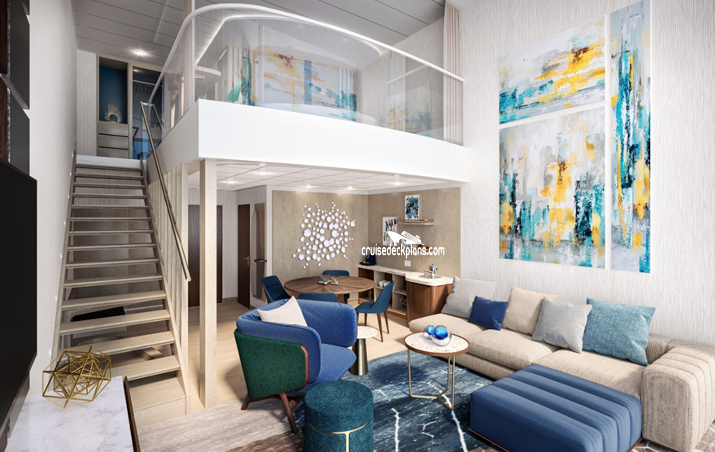 Click for our Royal Loft Suite cabin page with actual pictures and videos.