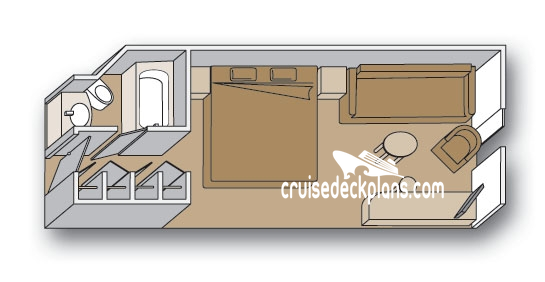 Stateroom Cabin Features: - Bedroom with king-size bed - Private bath with oversized whirlpool & shower - Hairdryer - Dressing room - Floor to ceiling windows that open to private balcony - Living room with sofa bed - Dining room - Pantry - Guest bath - Refrigerator, television, DVD player - Safe, multi-channel music, phone.