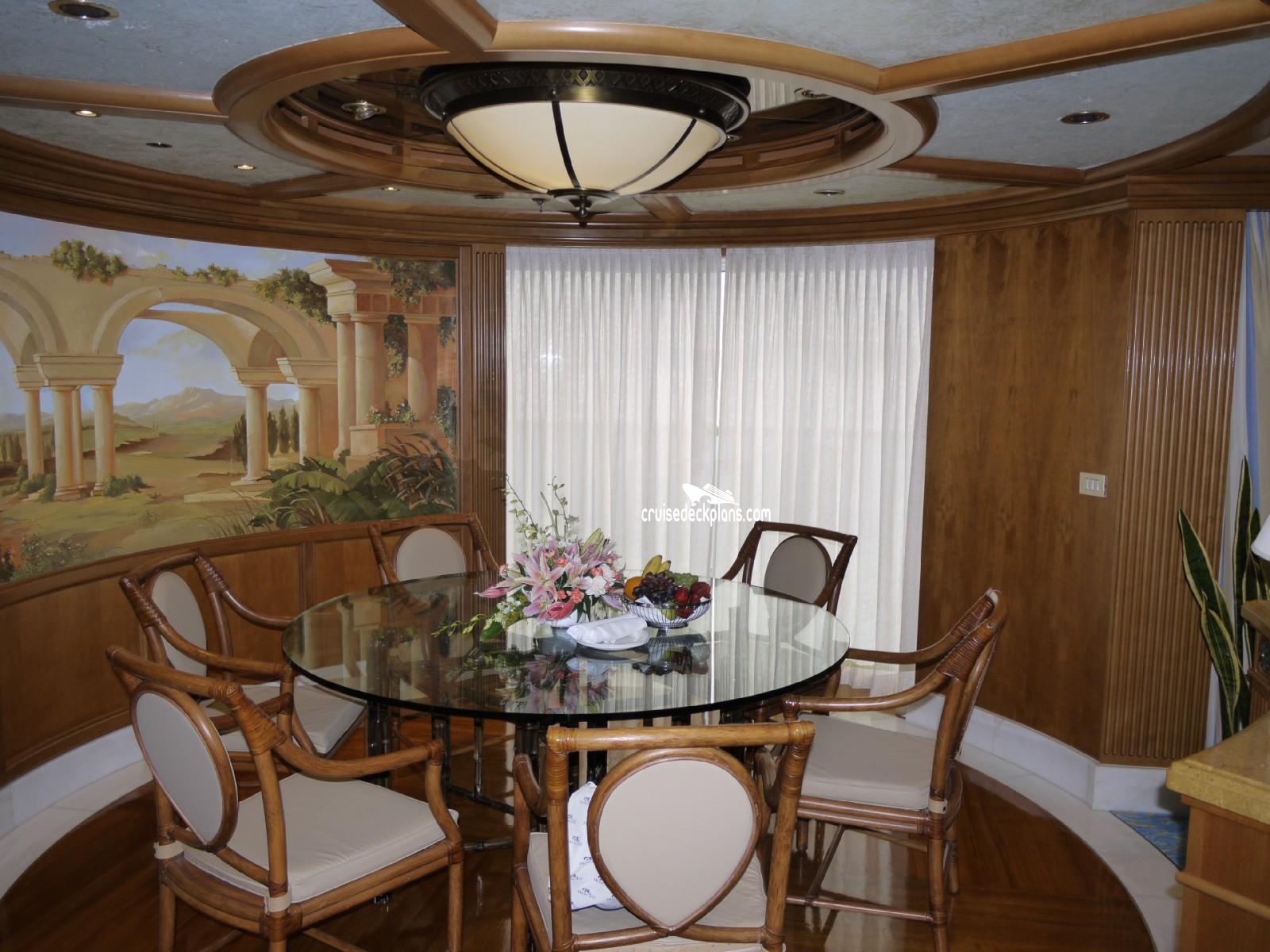 Priority Check In / Priority Debarkation / Priority Tender Boarding / Dining in the Stateroom / Afternoon Canapes / Afternoon Tea / Welcome Champagne / Exclusive Lounge / Exclusive Full Breakfast Restaurant / Priority Dining Reservations / Complimentary Laundry / Complimentary Photo(s) / Thick Cotton Robes / Pillow Menu / Upgraded balcony furniture including loungers, dining tables and chairs / complimentary mini-bar set-up / CD/DVD player with access to complimentary DVD library / Pillow-top mattress / Egyptian cotton high thread bed linens / fresh orchid in stateroom / upgraded bathroom amenities including bath salts and soothing gel eye mask / private lounge at the conclusion of the cruise / priority shore excursion reservations / priority line at service desk / use of Lotus Spa Thermal Suite / exclusive suite breakfast in Sabatinis (includes Mimosa) / exclusive elite lounge with hors d'oeuvres / extended room service menu with full menu offerings / complimentary cover charge for specialty restarants on embarkation evening / Chefs welcome goodies on embarkation day / complimentary flower corsage and boutonniere on first formal night / turndown service includes chocolate dipped stawberries or wrapped chocolates /
