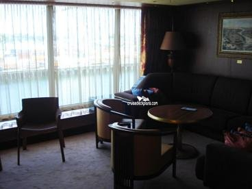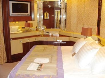Concierge Service / Priority Check In / Priority Debarkation / Priority Tender Boarding / Afternoon Canapes / Afternoon Tea / Complimentary Shoe Shine / Welcome Champagne / Exclusive Lounge / Exclusive Full Breakfast Restaurant / Priority Dining Reservations / Complimentary Laundry / Thick Cotton Robes / Pillow Menu / Signature Mariner's Dream bed with plush euro-top mattress and finely woven cotton linens / Lighted magnifying mirrors / Massage showerheads / Salon-quality hair dryer / Elemis Aromapure bath products / Flat-panel TV and DVD player / complimentary DVD library / Personalized cruise stationary / Umbrella & binocular usage / Gorgeous corsages and boutonnieres for the first formal night / Cocktail party with ship's officers / Premium duvet / Complimentary bottled water at embarkation / Bose docking station / Complimentary mimosas with in-suite breakfast / In-suite coffee maker and espresso machine. /