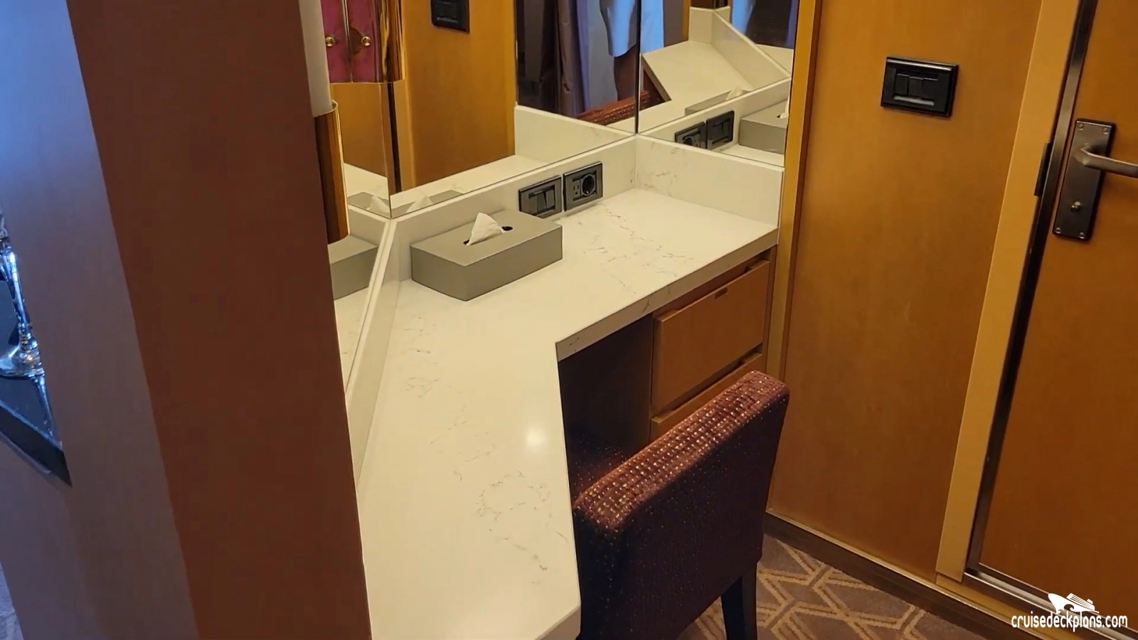 Scroll over cabin (stateroom) tiles below to click and watch videos. Cruisedeckplans.com shows up to 10 of the most recent videos added to our collection on this page. Be sure to click the link in the section below to see other cabins we have videos for. The date shown is the date video was published. Use this to see decor changes.