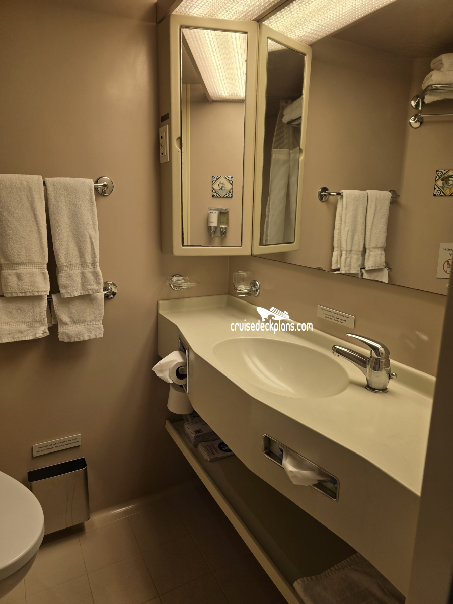 - Private bath with tub and/or shower (see symbols on deck plans)