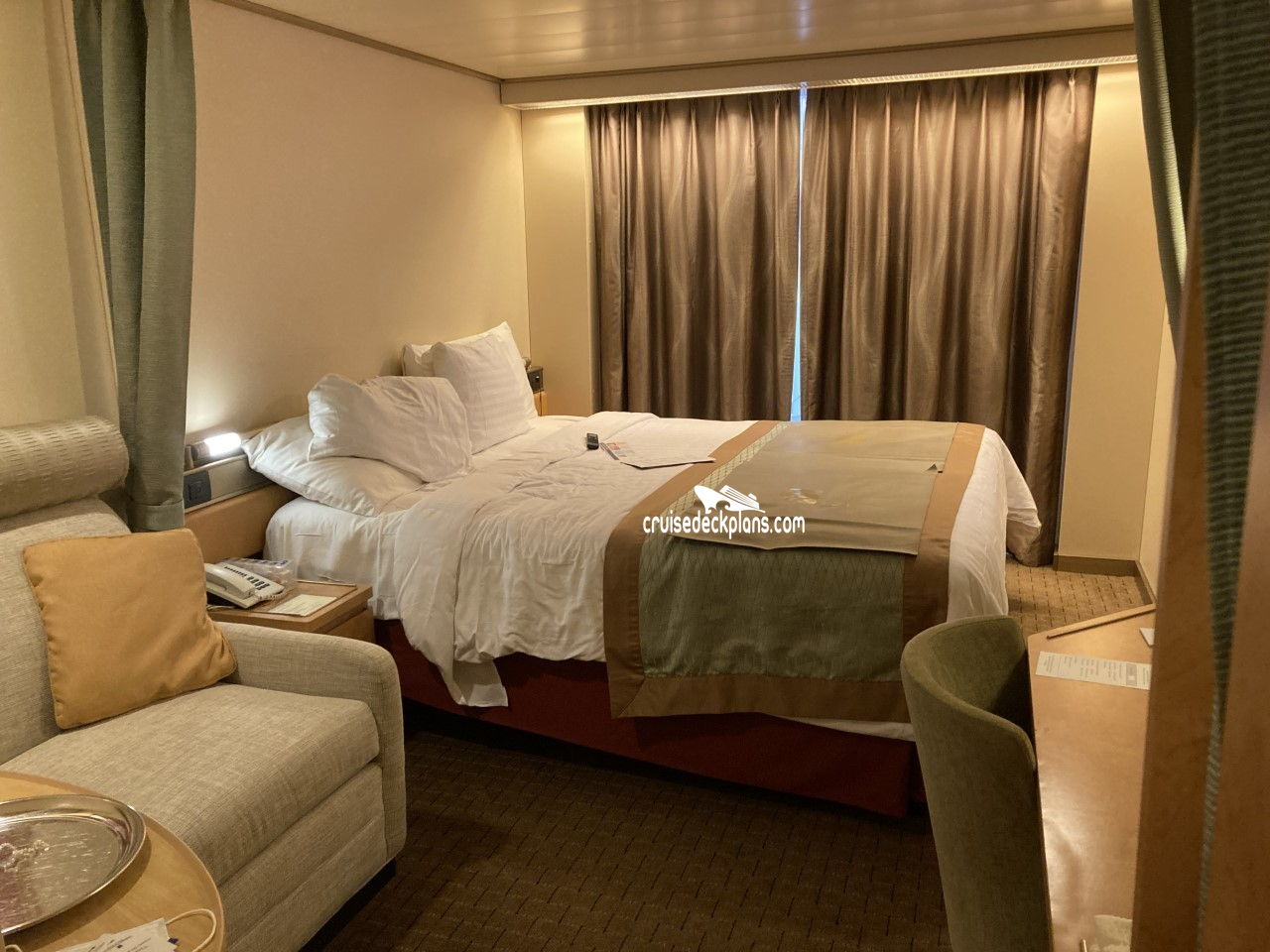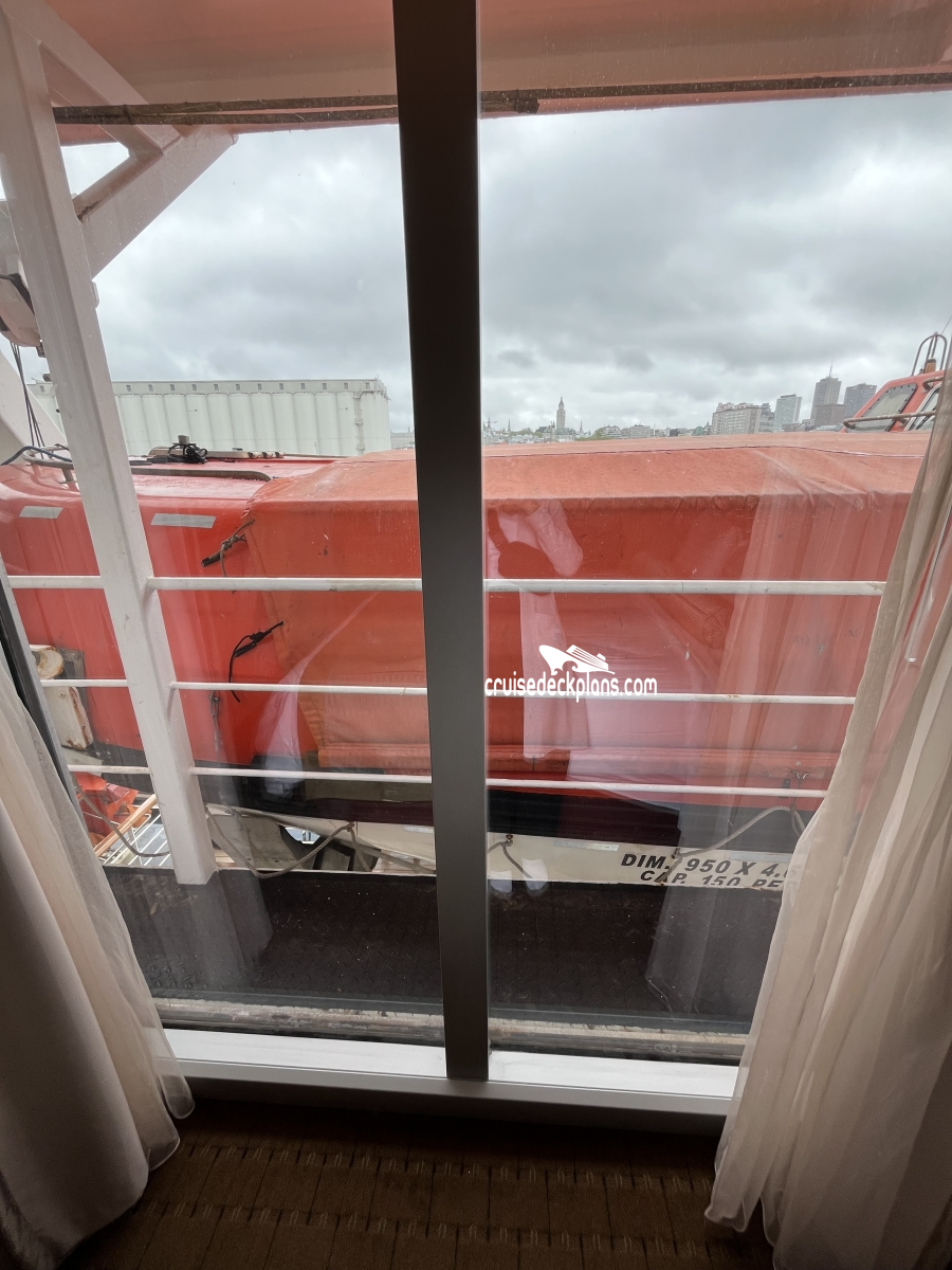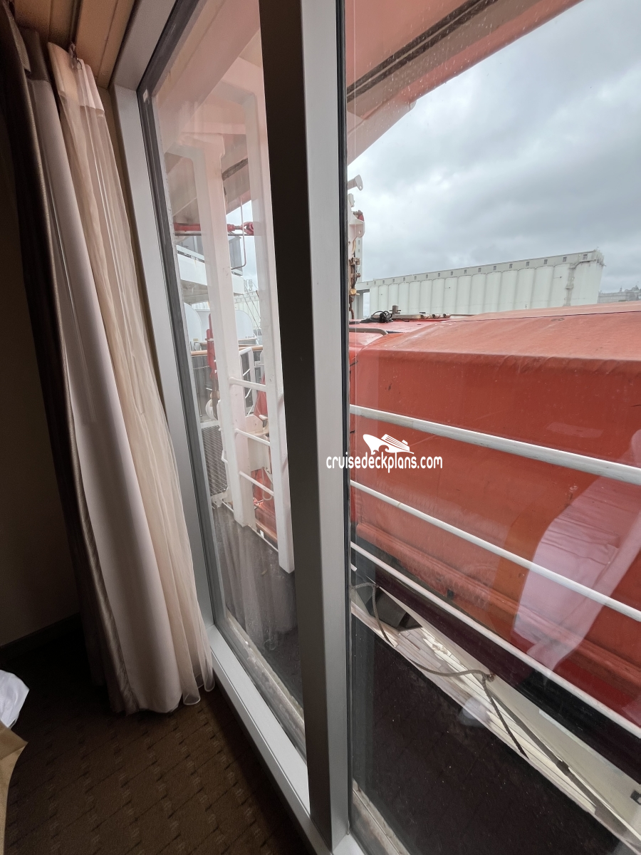 Cabin size ranges from 170 to 194 square feet. Category HH and H is fully obstructed. Category G is partially obstructed. Some VH, VH, VE verandahs have solid steel railings.