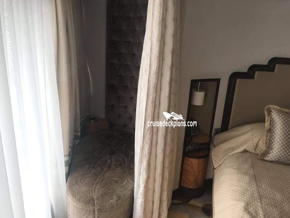 Disney Fantasy Concierge Royal Suite cabin location, stateroom cabin videos, stateroom cabin pictures, floor plans, diagrams, stateroom features and perks. Cruisedeckplans.com also provides links to actual stateroom cabin pictures and videos on this page. You can see details and floor plans for all of Disney Fantasy's different stateroom cabin categories on the NEW cabins page.