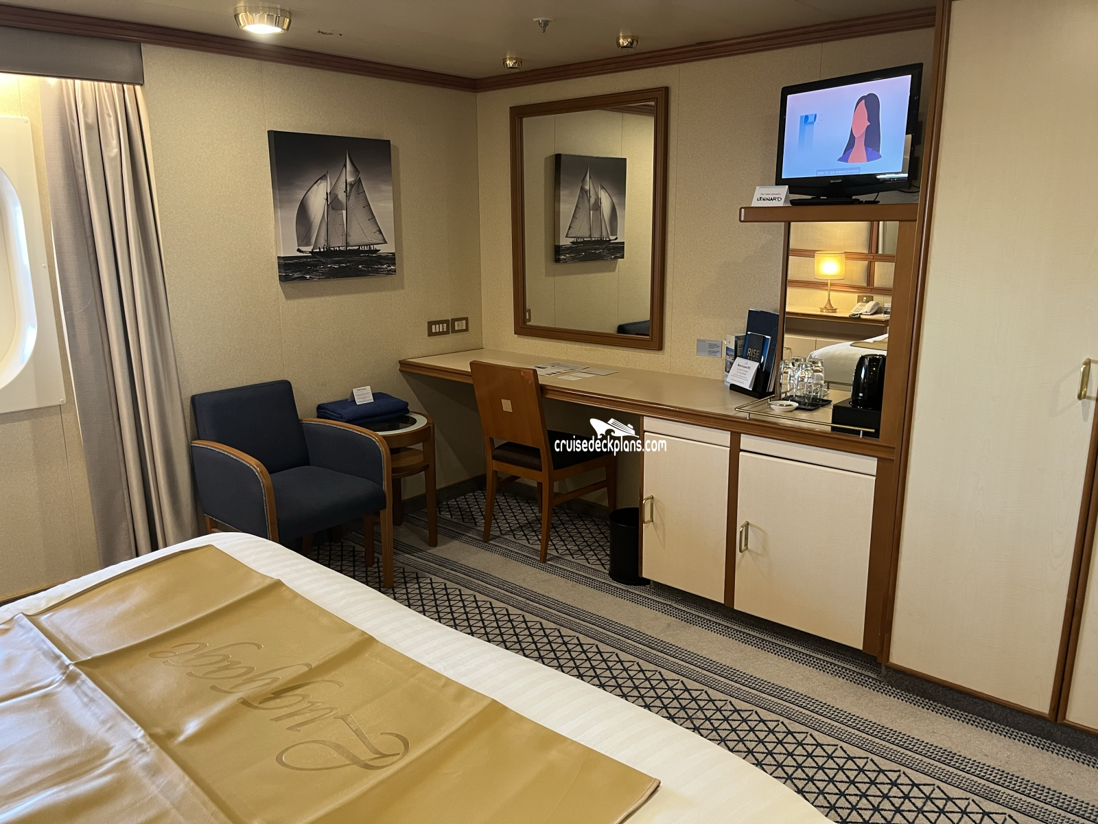 Azura Outside cabin location, stateroom cabin videos, stateroom cabin pictures, floor plans, diagrams, stateroom features and perks. Cruisedeckplans.com also provides links to actual stateroom cabin pictures and videos on this page. You can see details and floor plans for all of Azura's different stateroom cabin categories on the NEW cabins page.