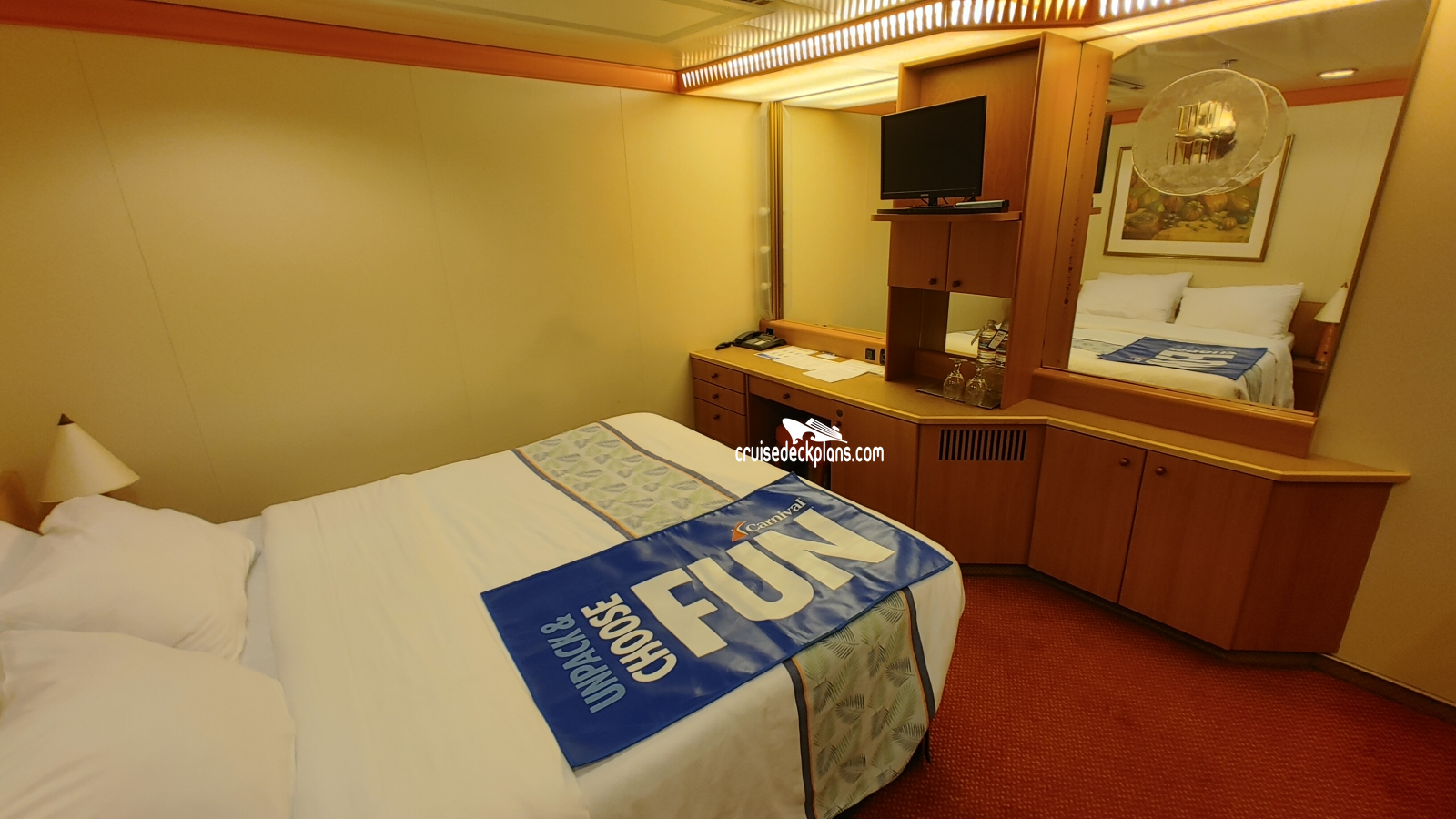 Carnival Pride Interior cabin location, stateroom cabin videos, stateroom cabin pictures, floor plans, diagrams, stateroom features and perks. Cruisedeckplans.com also provides links to actual stateroom cabin pictures and videos on this page. You can see details and floor plans for all of Carnival Pride's different stateroom cabin categories on the NEW cabins page.