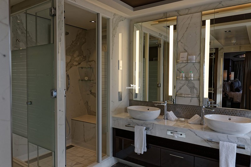 Butler Service / Concierge Service / Priority Check In / Priority Debarkation / Priority Tender Boarding / Dining in the Stateroom / Welcome Champagne / Exclusive Lounge / Exclusive Pool / Exclusive Outdoor Lounge / Thick Cotton Robes / Pillow Menu / Espresso & Cappuccino machine / Special suite menus / Bliss collection pillow-top mattress / Treats delivered to door every night / Courtyard valet / Escort to suite /